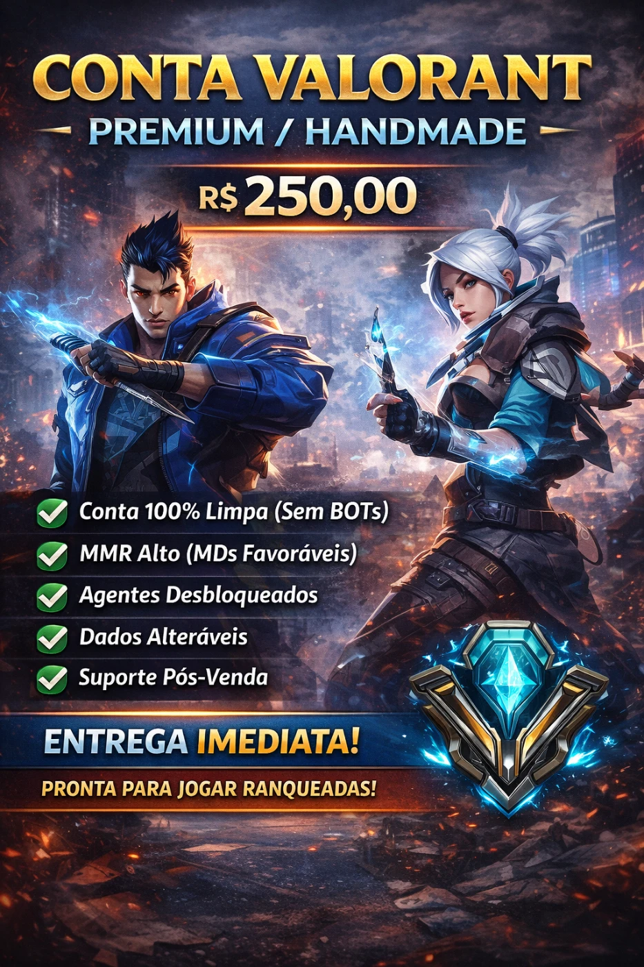 Conta Valorant HANDMADE (criada manualmente), desenvolvida sem uso de bots, ideal para jogadores que querem subir de elo mais rápido e jogar ranqueadas com vantagem desde o início.
